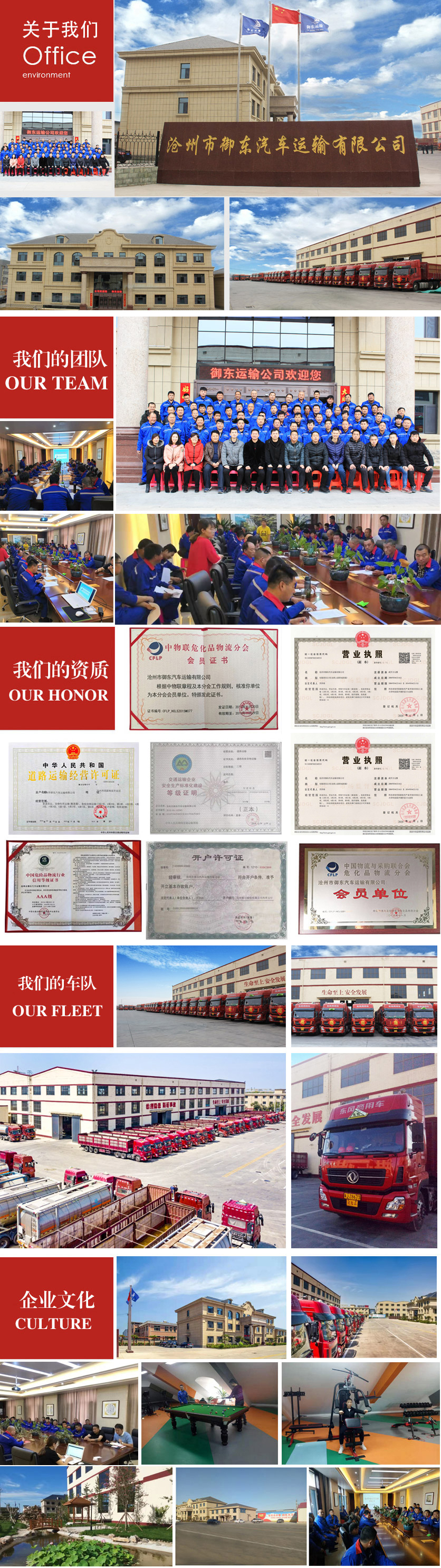 本公司成立于2004年4月,企业性质为有限责任公司,注册资金2000万元,固定资产6000万元,经营范围包括:普货运输,货运代办,货物专用运输(集装箱),危险货物运输(2类1项、2类2项、第3类、4类1项、4类2项、4类3项、5类1项、5类2项、6类1项、第8类、第9类)危险废物,医疗废物。